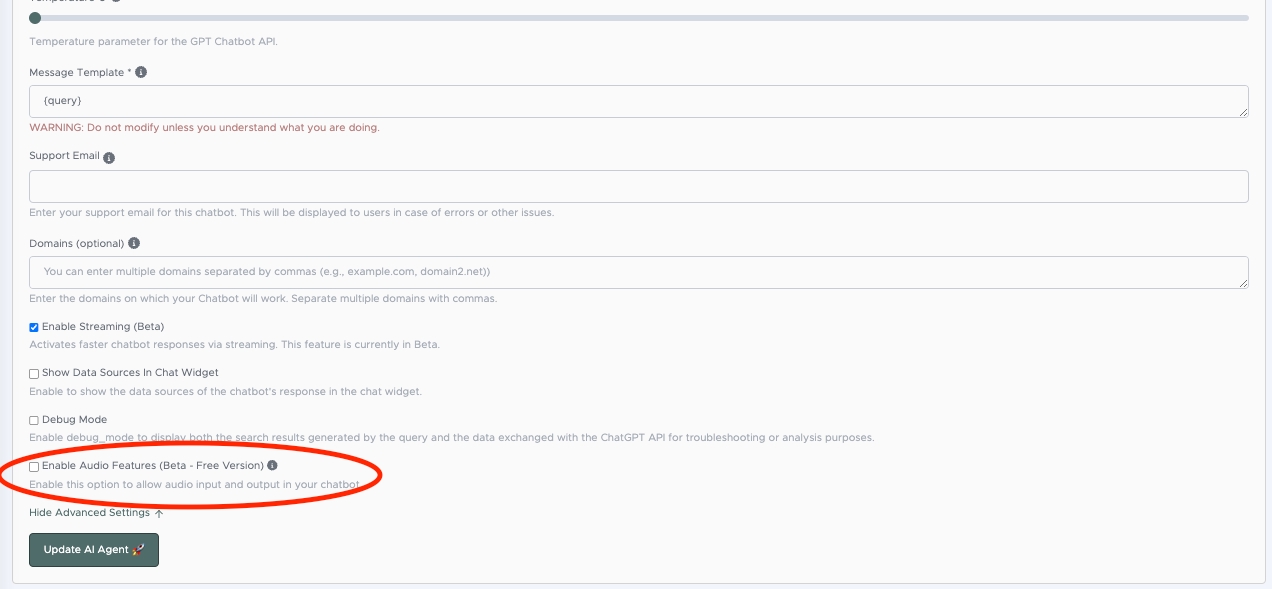 Ez a hangfunkció a chat widgetben teljesen ingyenesen használható mind ügynökségek, mind al-fiókok számára.