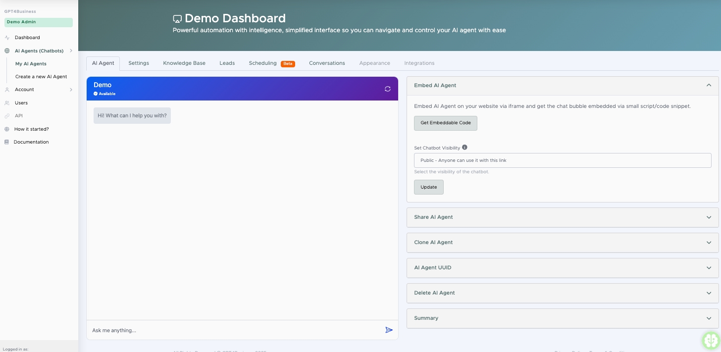 Ez az AI chatbot irányítópult, ahol minden egyes botot külön kezelhetsz.