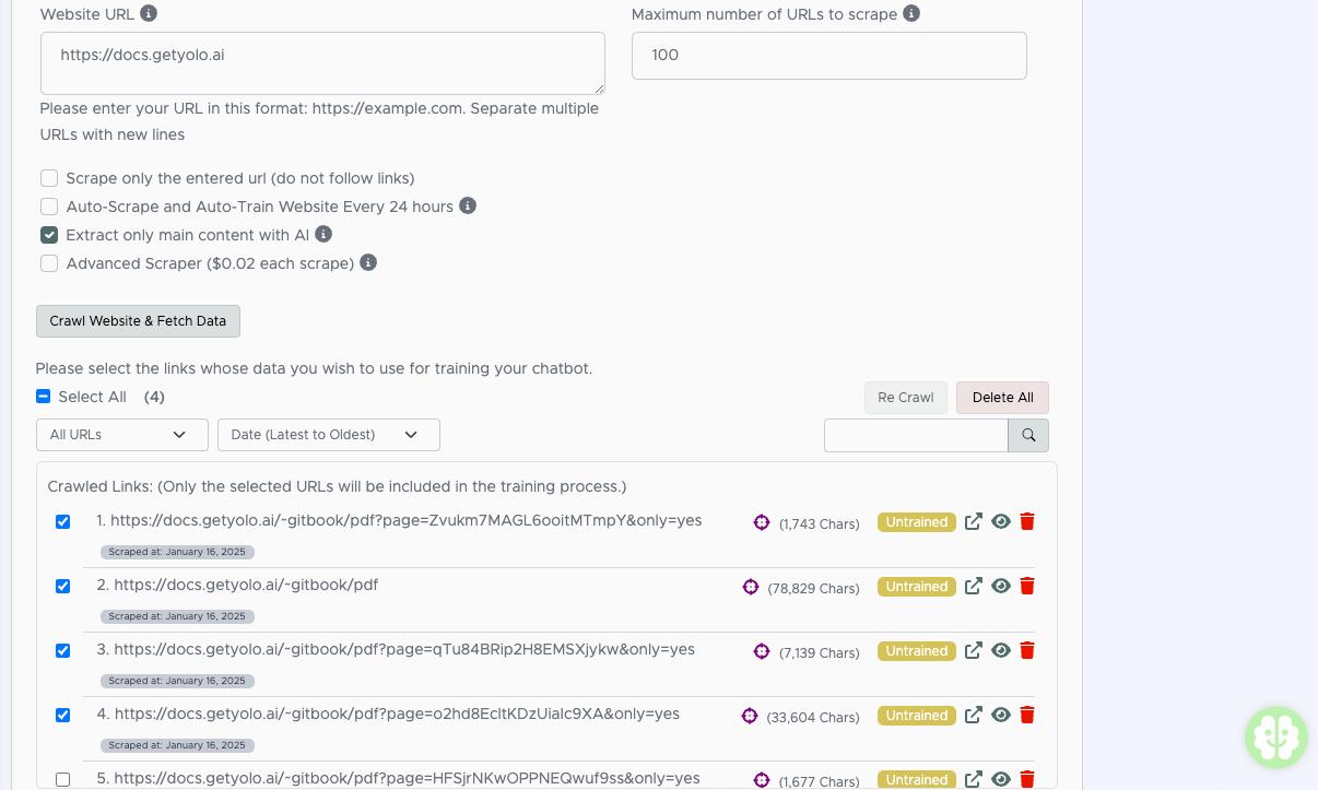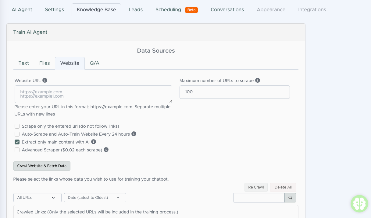 Kérjük, olvassa el figyelmesen a későbbi dokumentumokat. Ezekben részletes utasításokat talál arról, hogyan használhatja hatékonyan ezt a funkciót. Nem elegendő egyszerűen megadni egy URL-t, és elvárni, hogy az AI zökkenőmentesen működjön, mivel az AI, pontosabban a scraper, csak nyers adatokat von ki strukturálás nélkül. Megfelelő struktúra nélkül az AI nem lesz képes helyesen feldolgozni az információt. Használja ezt a funkciót óvatosan.